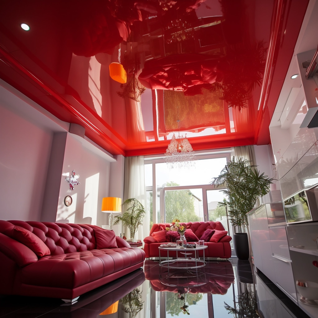 Красный глянцевый потолок